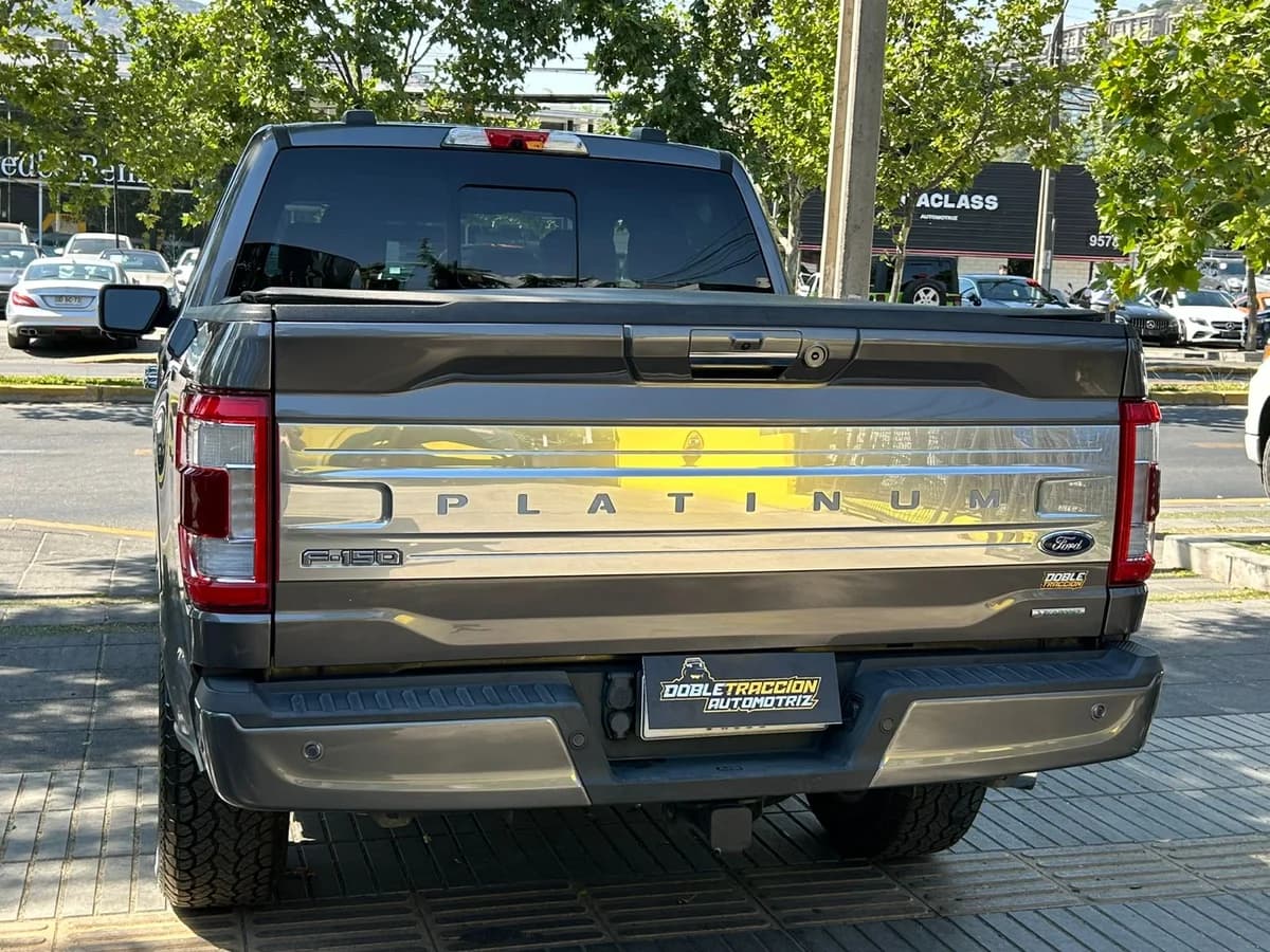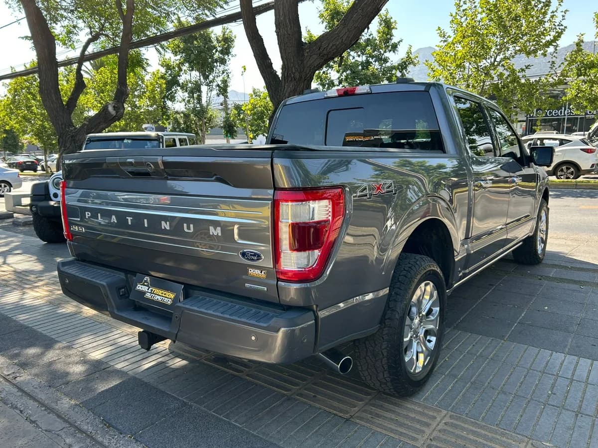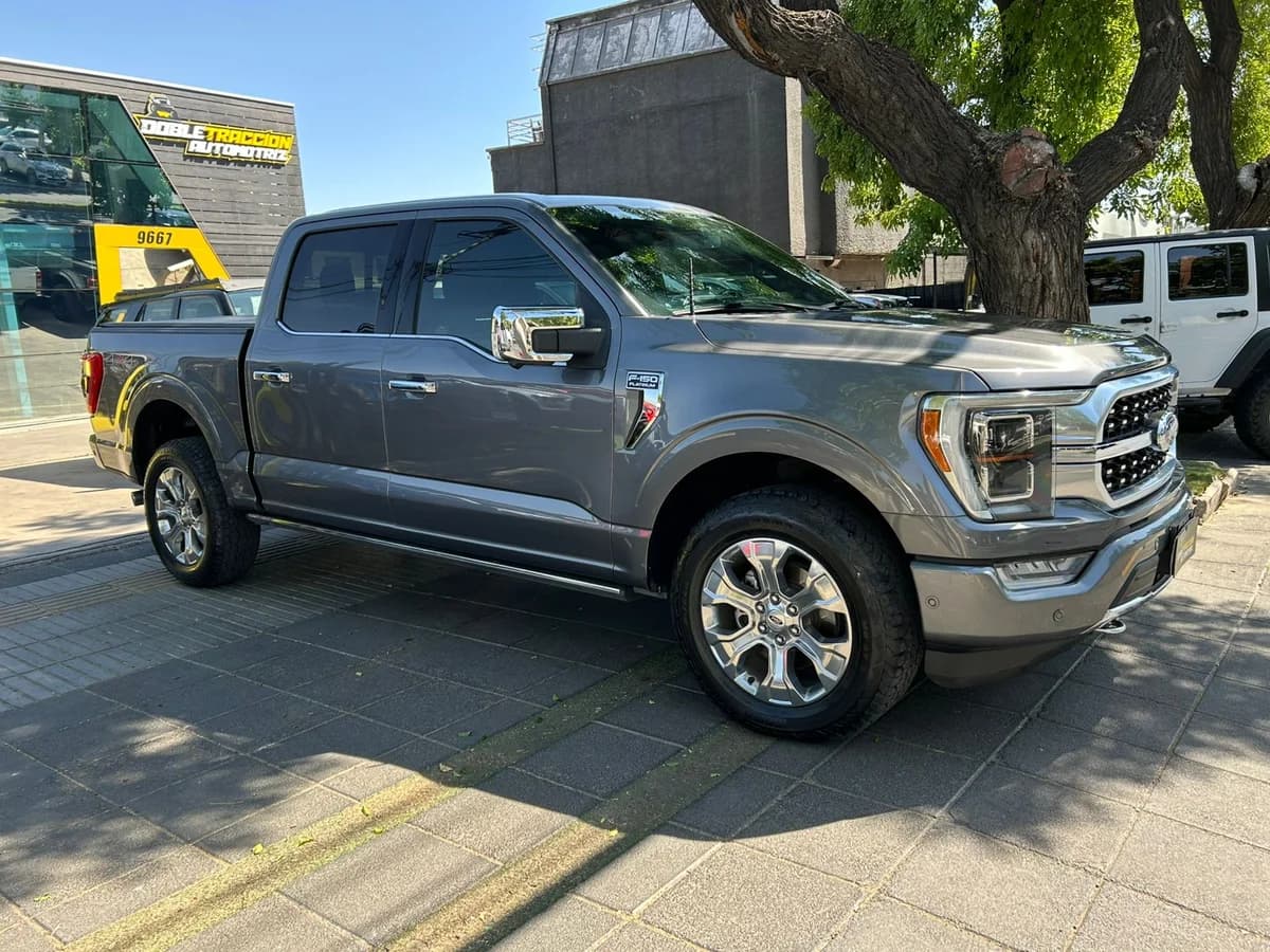 FORD F-150 PLATINUM 🔥 * Año: 2021 * Versión: Platinum 4x4 * Kilometraje: 66.300 * Motor: 3.500 * Combustible: Bencina * Transmisión: Automática 10 velocidades * Tracción: 4x4 * Precio: $41.990.000 2 dueños 2 llaves •Lona Maritima •Kit de arrastre americano •Lámina de seguridad 💰 Financiamiento 🤝 Recibimos vehículos en parte de pago 💳 Aceptamos tarjetas de crédito Para más información comunícate con nosotros ⬇️ 📲 Whatsapp +56 9 3380 6123 🌐 Visítanos en www.dobletraccionautomotriz.cl 🏠 Av. Vitacura 9667, Vitacura.