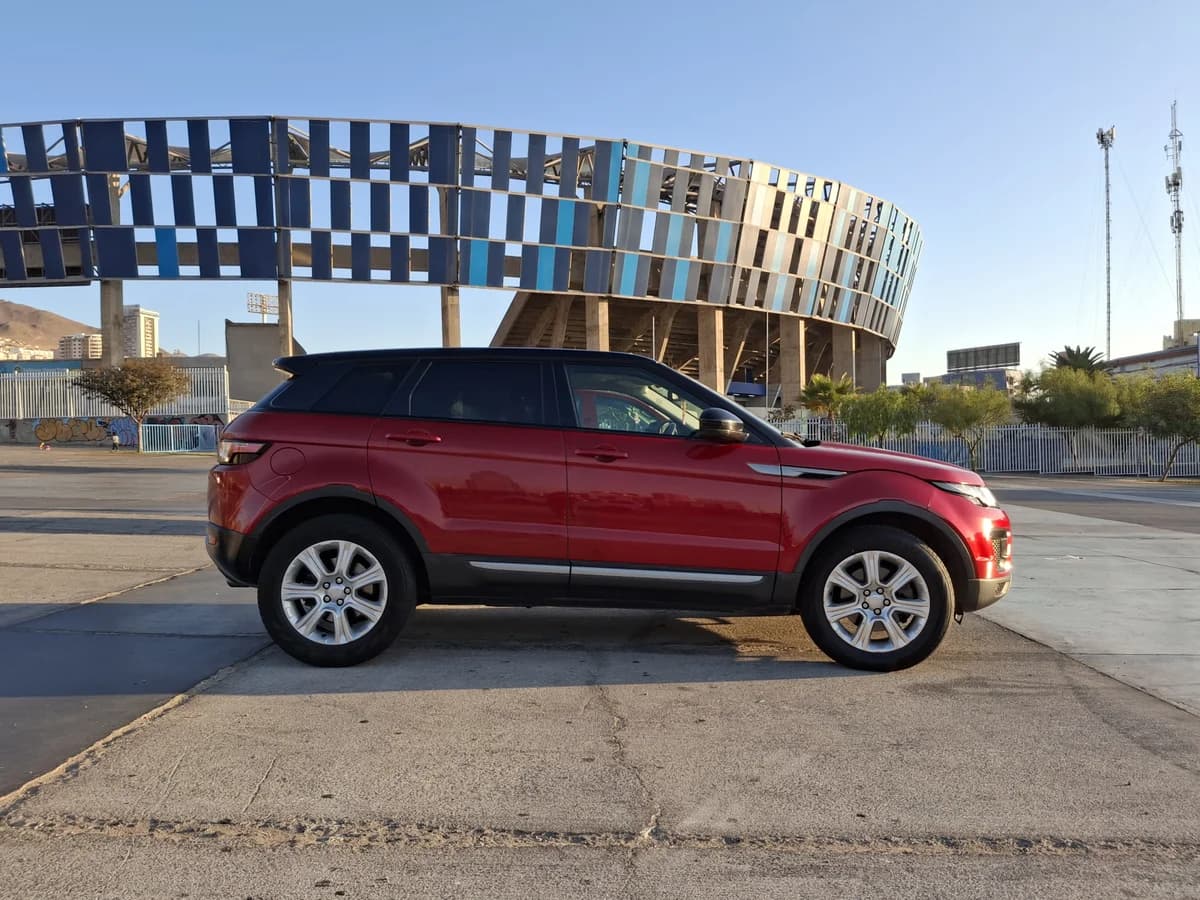 Range Rover Evoque Pure AWD • Año 2018 • 88.843 km • Motor 2.0 Turbo • 240 HP • Torque 365 NM • Bencinero • Automático de 9 velocidades • Selector de terrenos • 14 air bag • Anclajes isofix • Alza vidrios eléctricos • Asientos de Tela • Cierre central de puertas • Climatizador bi zona • Neumáticos 70% vida útil • Llantas • Mantención al día • Velocidad crucero • Neblineros • Techo panorámico • Pantalla de 8” • Audio Meridian, con 8 parlantes • Acabados de aluminio • Control de descenso • Control de estabilidad • Computador central • Documentación al día • Transferencia inmediata