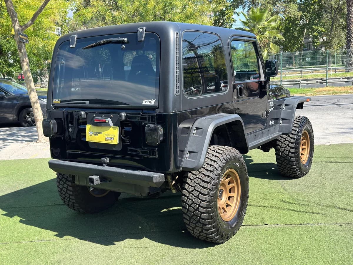 JEEP WRANGLER TJ 4.0😎 • Año: 1999 • Versión: Wrangler TJ • Kilometraje: 167.170 • Motor: 4.0 •Tracción: 4x4 • Combustible: Bencina • Transmisión: Manual • Precio: $18.480.000.- Mantenciones al día Equipado en la casa En equipamiento tiene🔥 * Amortiguadores Fox 2.0 (traseros con reservorio) * Amortiguador de dirección Fox * Kit de levante 4” Rough Country * Long Arms regulable Rough Country * Neumáticos BFG KM3 35” nuevos * Llantas Method Beadgrip bronce * Parachoques delanteros Rugged Rige * Parachoque trasero Rugged Rige con enganche de arrastre * Diferencial trasero ford 8.8 con bloqueo lock right y freno de disco. * Diferencial delantero reforzado con lsd de cromo. * Butacas bride. * Kit de embrague centerforce * Radiador champion, sistema de refrigeración con termostato y mangueras nuevas. * Múltiple de escape y linea en inox con silenciador borla. * Sistema de encendido MSD (multichispa). * Radio touch con subwoofer y amplificador. 🤝 Recibimos vehículos en parte de pago 💳 Aceptamos tarjetas de crédito Para más información comunícate con nosotros ⬇