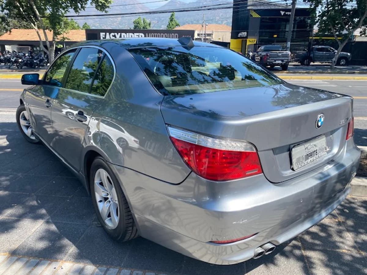 BMW 525 IA 2.5 año 2009 Interior cuero, electricos, sunroof, climatizador Bi-zona. 1 dueño, La sucesión. Esta impecable. Es una delicia de andar y manejar. ademas esta bonito, perfecto de interior. buenos neumáticos. Estuvo 10 años guardados. antes de pasar a la sucesión. Perfecto de mecánica, con mantenciones y al día. La de 120 mil km. hecha el 2019 en W.B.M antes de venderlo. La de ahora 130 mil, multimarca. 7.900 kilómetros de uso por año. 178.250 kilómetros. Tiene todo, su gata, tuerca de seguridad, herramientas, rueda de repuesto. Papeles al día Manuales, Folleto original con el precio original de 59 mil dólares el 2005 Libreta de servicio timbrada, la de W.B.M también. 2 llaves. Airbag frontales, laterales y traseros (8) Aire acondicionado, climatizador Bi-zona Asientos eléctricos delanteros, memorias el del chofer Caja de cambio automática y tiptronic de 6 velocidades. Cierre central de puertas Dirección asistida Espejos eléctricos Frenos ABS Interior y asientos de cuero, aplicaciones de madera en puertas y tablero Llantas 16 Neblineros Radio CD de fábrica, comando en el volante. Sensores estacionamiento Sunroof eléctrico Velocidad de crucero Ventanas eléctricas Volante multifunción, regulación eléctrica